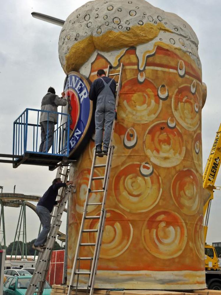 Aufbauarbeiten auf dem Festgelände: Zum 200. Geburtstag der Wiesn werden besonders hohe Sicherheitsvorkehrungen herrschen.
