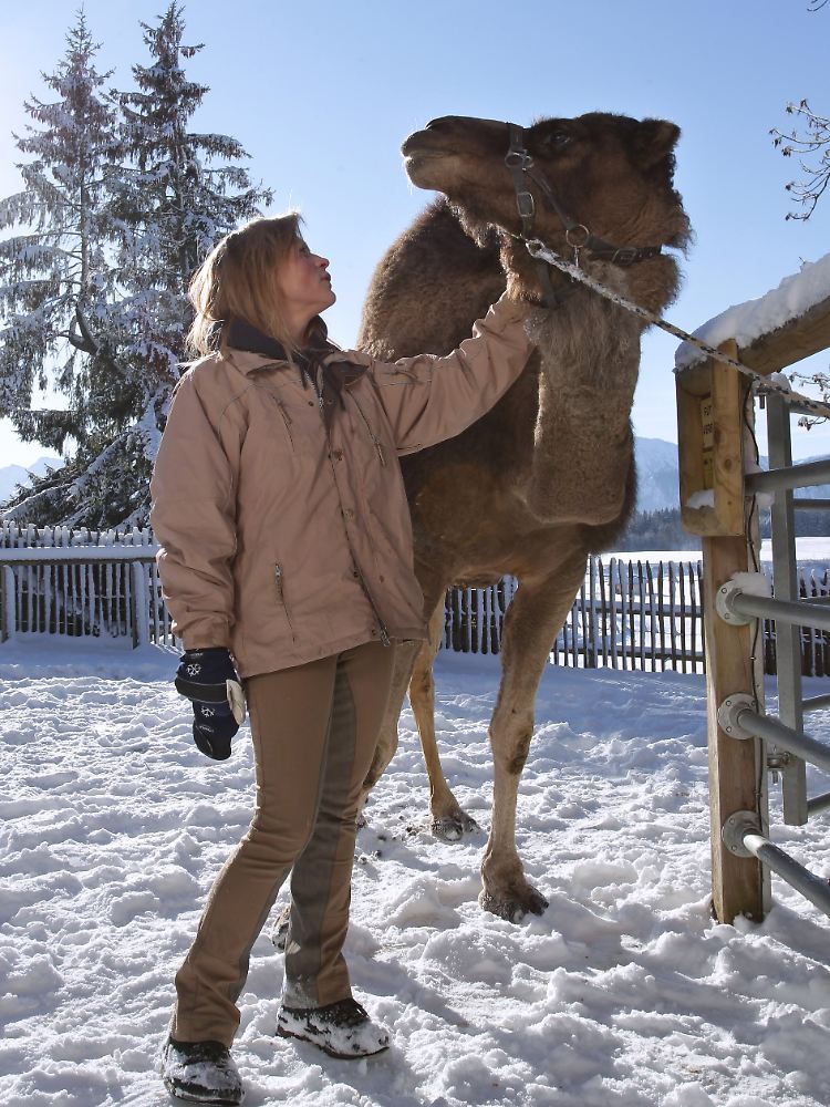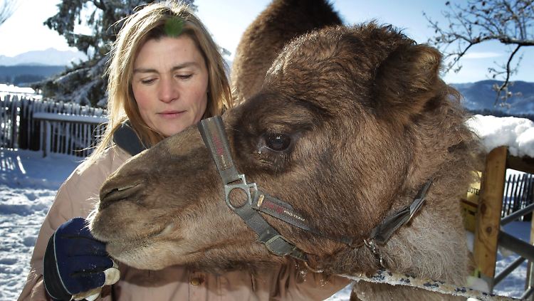 Christine Sieber ist ein großer Tierfreund. Dass sie einmal ihren Beruf als Bürokauffrau an den Nagel hängen würde, um sich ganz ihren Tieren zu widmen, hätte sie vor ein paar Jahren noch nicht für möglich gehalten. "Das war alles auch gar nicht so geplant. Aber heute könnte ich es mir nicht mehr anders vorstellen. Es ist ein Traum, mit Tieren zu arbeiten", sagt die 39-Jährige und streichelt Dabian über den Nasenrücken. Dabian ist ein Kamel und stammt aus Dubai. Bei Sieber im derzeit verschneiten Allgäu fühlt sich das Höckertier trotzdem wohl. Das liegt nicht zuletzt an der Gesellschaft: 30 Wüstentiere stehen auf der Allgäuer Kamelfarm in Seeg.