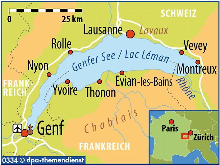 Yvoires Gastronomie ist überschaubar. Aber an der Straße entlang des Sees finden Besucher einige Gelegenheiten, niveauvoll einzukehren. Wer ein bisschen Luxus sucht, wird in Evian-les-Bains eine knappe halbe Autostunde weiter östlich fündig. Dort, wo das weltberühmte Wasser abgefüllt wird, liegt noch heute das Flair adeliger und großbürgerlicher Sommerfrische in der Luft.