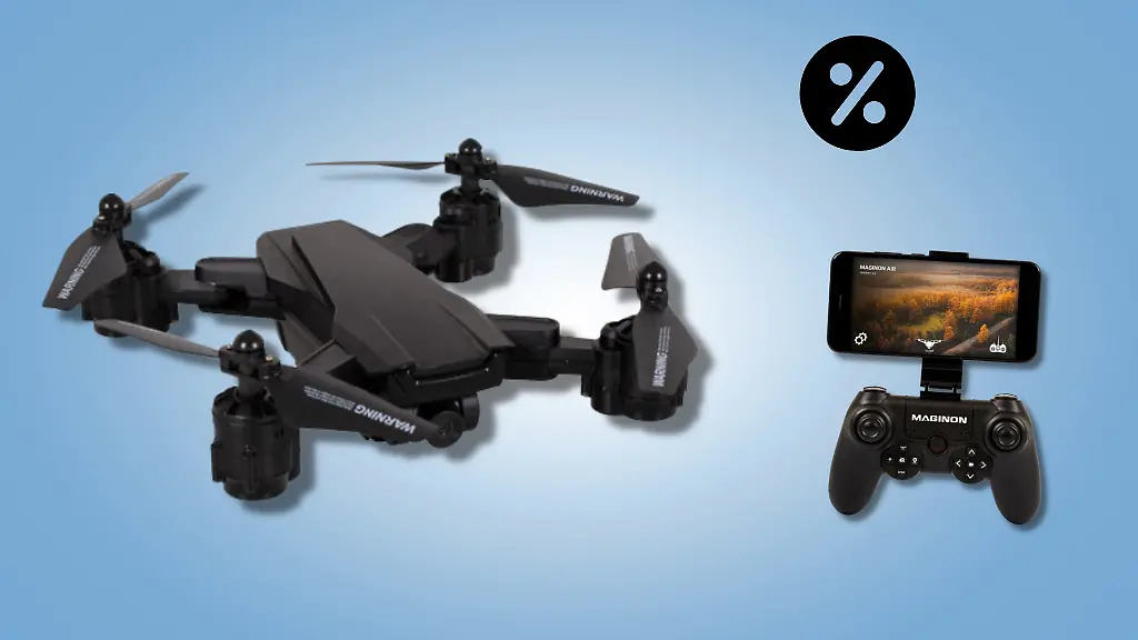 Eine Drohne liefert HD-Bilder aus der Luft direkt aufs Smartphone. Mittlerweile sind die Fluggeräte auch für Anfänger erschwinglich geworden. Gerade einmal 39,99 Euro verlangt Aldi für die WiFi Drohne QC-710SE von Maginon, die UVP liegt bei 99,99 Euro - ein Rabatt von 59 Prozent. Im Onlineshop des Herstellers ist das Modell für denselben Preis zu haben, andere Händler verkaufen das Modell nicht.