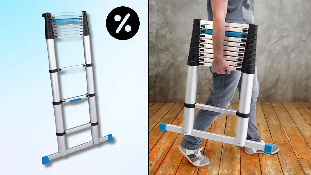 Mal ist eine Glühlampe an der Decke kaputt, ein anderes Mal müssen Gardinen auf- oder abgehängt oder Arbeiten an der Fassade erledigt werden: Es gibt viele Situationen im Alltag, in denen wir auf eine Leiter angewiesen sind. Doch die Heimwerker-Helfer sind sperrig und nehmen viel Platz weg. Anders sieht das bei einer Teleskopleiter aus, die einfach aus- und eingefahren werden kann. Aldi verkauft momentan ein Modell von Workzone für 99,99 Euro. Ein guter Kauf?