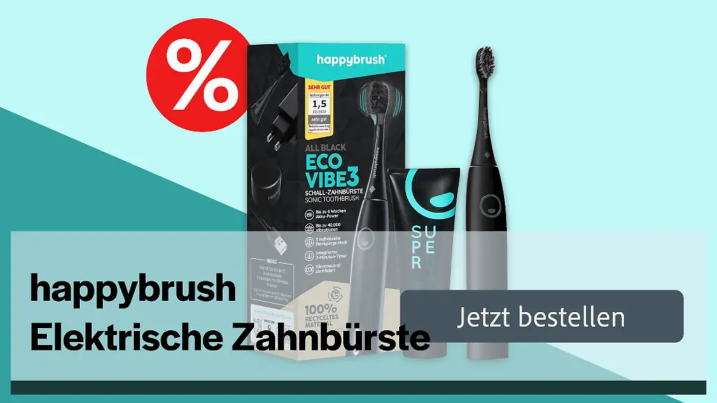 Strahlend weiße Zähne und ein gutes Gewissen? Die elektrische Zahnbürste von Happybrush macht es möglich – und das zum Black Friday zu einem Preis, der nicht auf den Zahn fühlt. Aktuell gibt es die Eco Vibe 3 so günstig wie noch nie. Lohnt das Angebot?