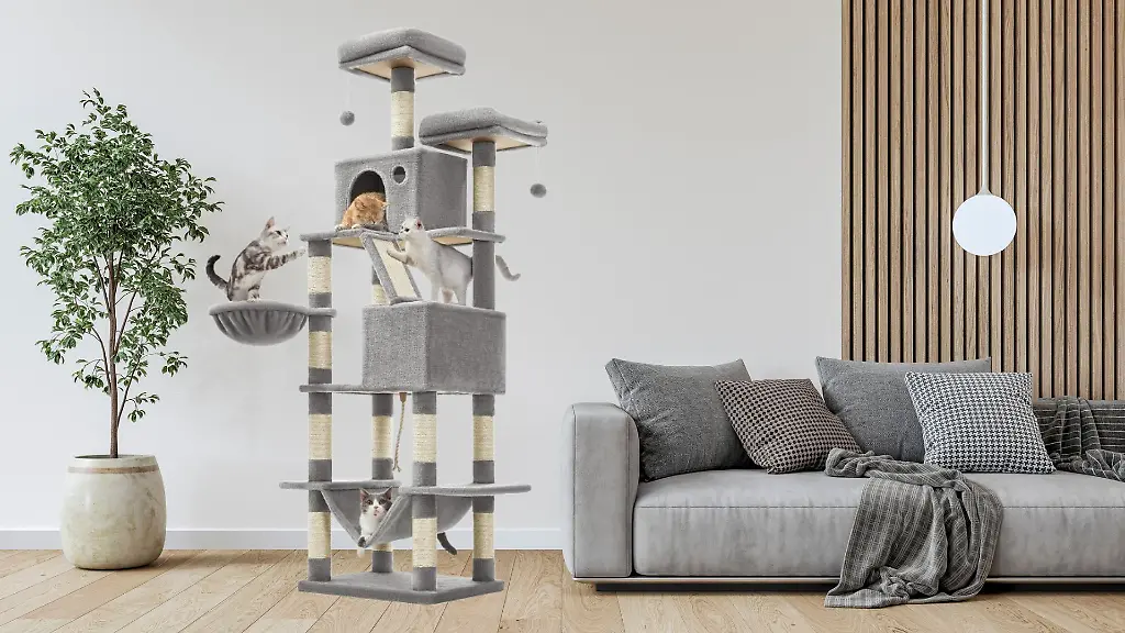 Kratzbäume gehören zur Grundausstattung in Haushalten mit Katzen. Neben Flächen zur Krallenpflege sind erhöhte Liegeplätze und Rückzugsorte gefragt. Der Feandrea XXL-Kratzbaum kombiniert diese Elemente auf mehreren Ebenen und erreicht eine Höhe von 206 Zentimetern. Mit 13 Sisal-Kratzsäulen, zwei Höhlen, Plattformen, Korb und Hängematte deckt das Modell verschiedene Bedürfnisse ab. Bei Amazon liegt es aktuell auf Platz eins der Kategorie "Aktivitätskratzbäume" und kostet rund 65 Euro.
