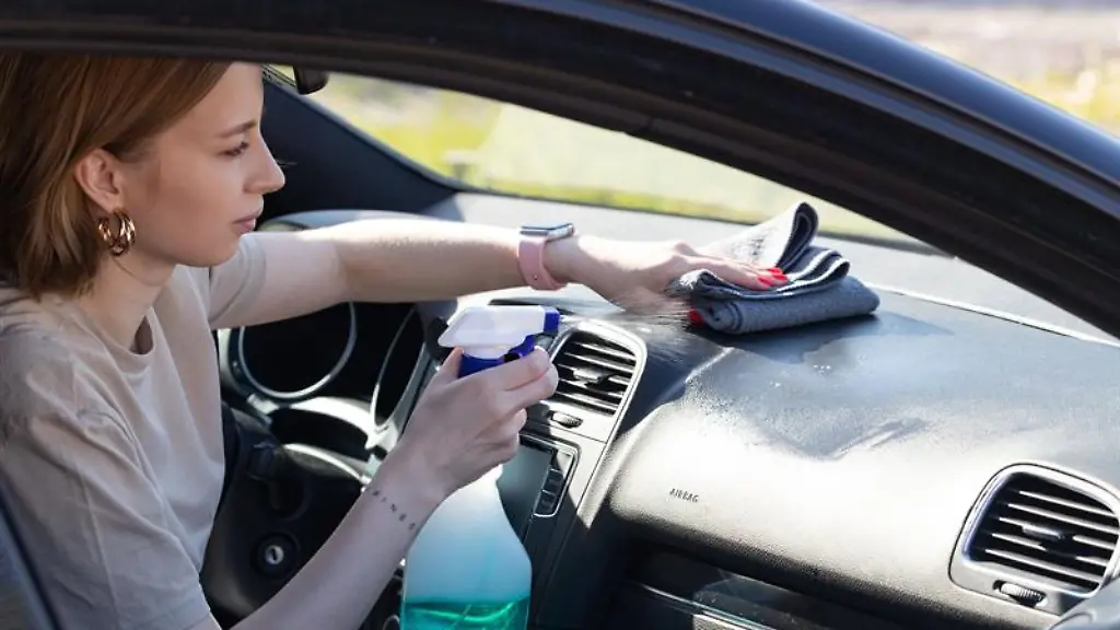 Ein Sauger entfernt groben Dreck und Staub, doch auf den Armaturen, Fenstern und Co. darf es gern regelmäßig eine Tiefenreinigung sein. Das gelingt mit einem passenden Reiniger und Lappen – so sind auch Flecken von Flüssigkeiten schnell entfernt. Eine Bürste oder ein Pinsel kriegen den Staub und Dreck auch aus den Lüftern der Klimaanlage.