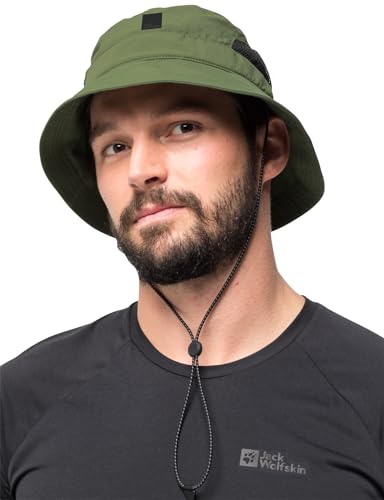 Im Sommer sollte zusätzlich ein Sonnenschutz-Hut mit auf Tour. Der schützt den Kopf vor allzu starker Hitze und Strahlung. Dabei ist es wichtig, dass der Hut leicht und atmungsaktiv ist. Außerdem ist es praktisch, wenn er schnell trocknet und am Kinn mit einem Band feststellbar ist, wie dieses Modell von Jack Wolfskin. So schützt er auch vor leichtem Regen.