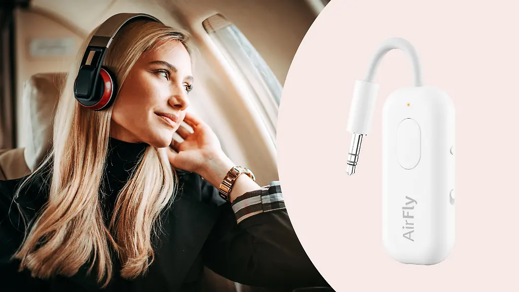 Ein Bluetooth-Dongle wie der AirFly fungiert als Brücke zwischen Geräten, die keine integrierte Bluetooth-Funktion besitzen, und solchen, die Bluetooth-fähig sind. Im Flugzeug werden sie einfach in den Klinkensteckplatz des Inflight-Systems gesteckt. Per Bluetooth senden sie den Ton aus dem Inflight-System an die gekoppelten Kopfhörer. So können Reisende Filme dann auch über hochwertige Kopfhörer mit Noise Cancelling hören.