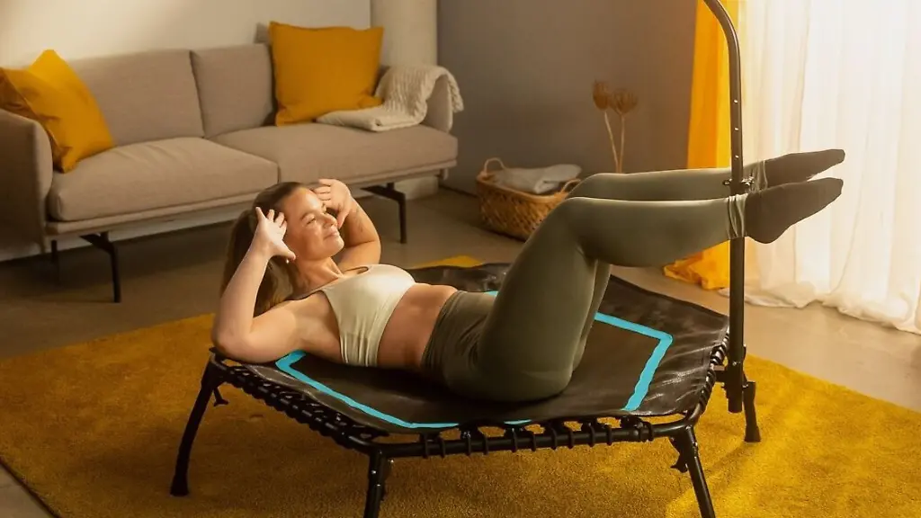 Das Trampolin ist belastbar für bis zu 150 Kilogramm und ermöglicht Abwechslung im Ausdauer- und Koordinationstraining. Allerdings braucht es ausreichend Platz und einen stabilen Untergrund.