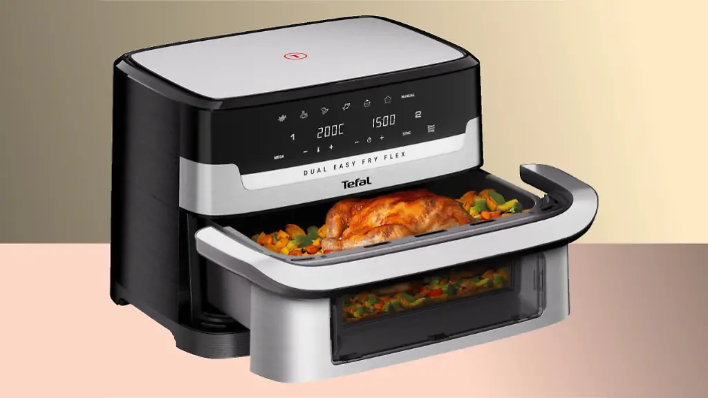Heißluftfritteusen etablieren sich in immer mehr Küchen als stromsparender Ofenersatz. Das Modell Dual Easy Fry Flex von Tefal verspricht besonders viel Komfort und ist jetzt günstig zu haben. Ein heißer Schnapper?