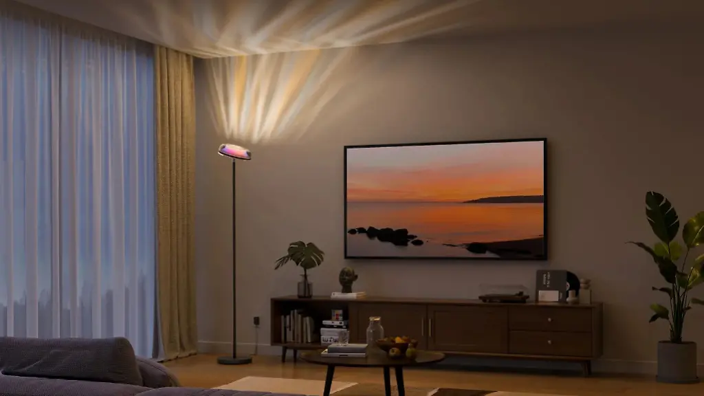 Das Gerät besteht im Grunde nur aus einem Standfuß und einem langen Stiel. Letzterer ist auf der Rückseite mit 72 anpassbaren LEDs ausgestattet und wirft individuell eingefärbte Lichtverläufe an die Wand. Auf diese Weise entsteht eine stimmungsvolle und indirekte Raumbeleuchtung, die sich ebenfalls mit Musik synchronisieren oder mit anderen Smarthome-Gadgets koppeln lässt, um etwa Automationen oder Zeitpläne zu programmieren.