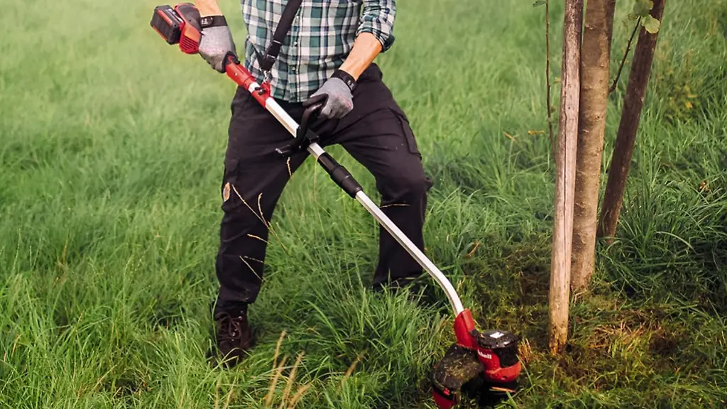 Der Motor mit elektronischer Drehzahlregulierung bringt den Trimmer auf bis zu 9.000 Umdrehungen pro Minute. Der zwei Millimeter starke Schnittfaden stutzt das Gras auf einer Breite von 30 Zentimetern und lässt sich dank Fadenspule mit Tippautomatik einfach nachziehen. Mit einem Gewicht von 3,1 Kilogramm sollte der Einhell Akku-Rasentrimmer auch bei längeren Einsätzen gut in der Hand liegen. Ein Blumenschutz verhindert, dass Zierpflanzen beim Trimmen in Mitleidenschaft gezogen werden.