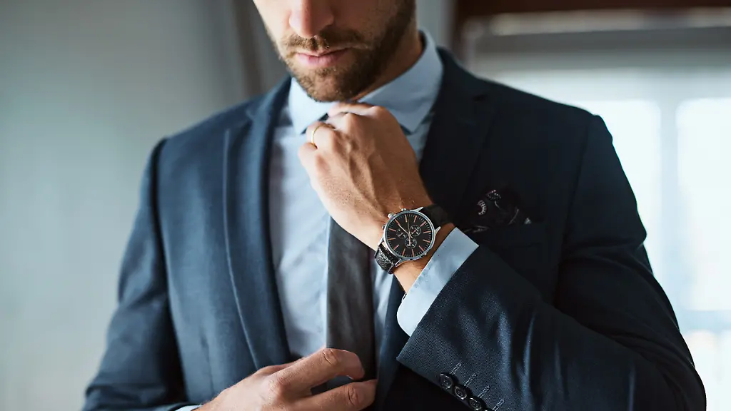 4. Die Krawatte richtig binden. Hier kann Man(n) viel falsch machen. Wichtig ist: Schwere Stoffe sollten mit einem kleinen Knoten gebunden werden, leichte Stoffe wie Seide vertragen auch einen größeren Knoten. Der klassische Four-in-Hand-Knoten geht eigentlich immer. Bei einem weiteren Kragen lohnt sich auch der aufwendigere Windsor-Knoten.