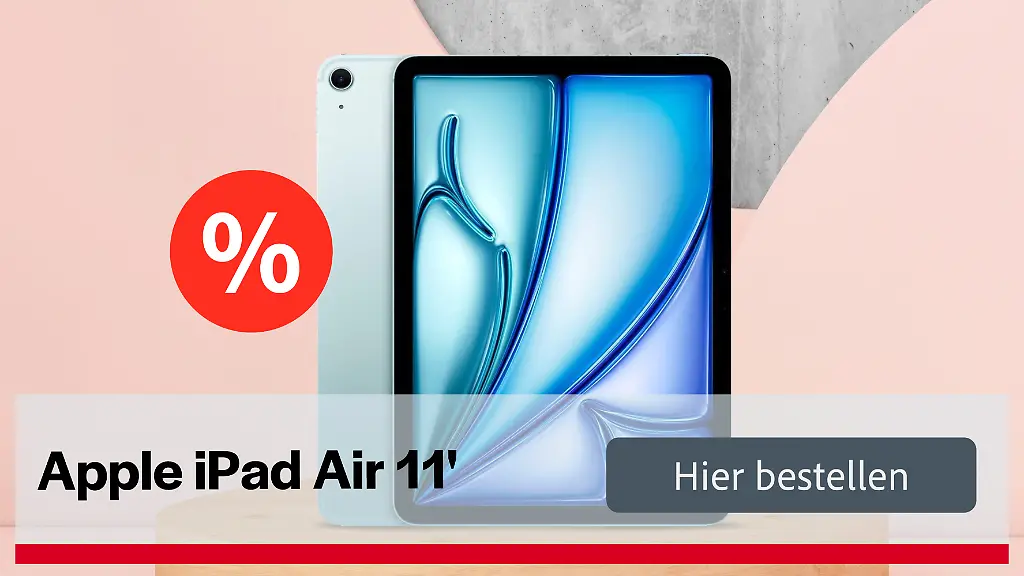 Beim angebotenen iPad Air handelt es sich um ein Modell aus der aktuellen Generation mit M3-Chip. Das Gerät bringt acht Gigabyte Arbeitsspeicher sowie 128 Gigabyte internen Speicher mit. Im Test bei Chip.de erhielt das Tablet die Note 1,9. Apple-typisch wurde dabei wieder vor allem die starke Performance und der Akku gelobt, Abzüge gab es für das Display, das aber immerhin noch eine 2,8 bekam.