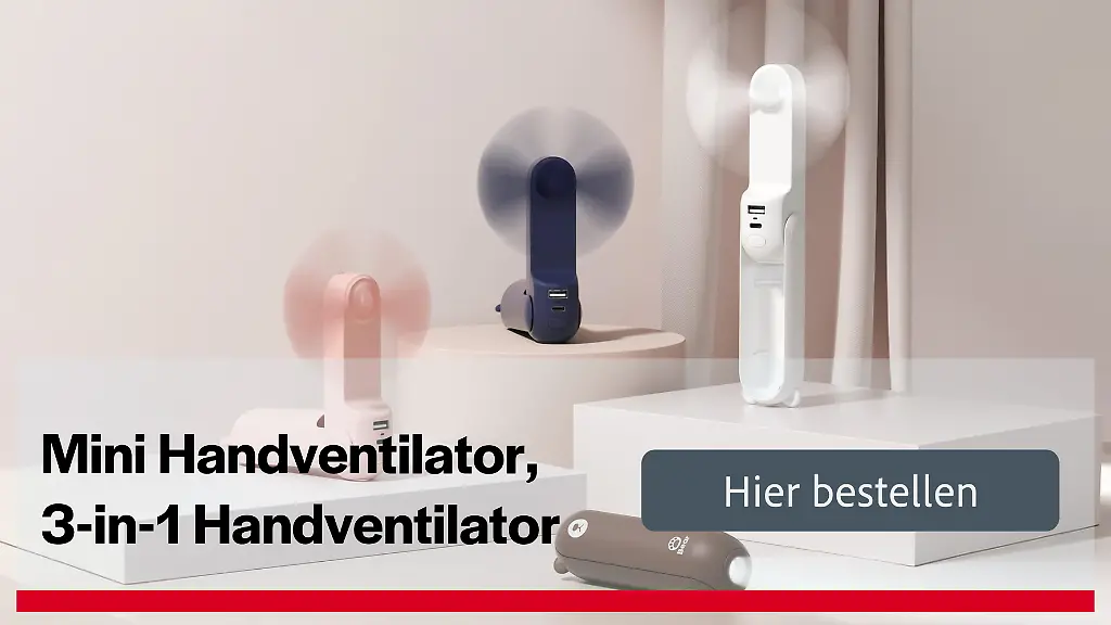 Ein weiterer Pluspunkt ist die Möglichkeit, den Ventilator zusammenzuklappen und wie einen Lippenstift in der Hand zu tragen – was ihn nicht nur praktisch, sondern auch stilvoll macht. Durch den Klappmechanismus lässt sich der Mini-Ventilator auch auf den Schreibtisch stellen. Bei Amazon überzeugt das kleine Gadget: 72 Prozent der 10.000 Bewertungen vergeben fünf von fünf Sternen.