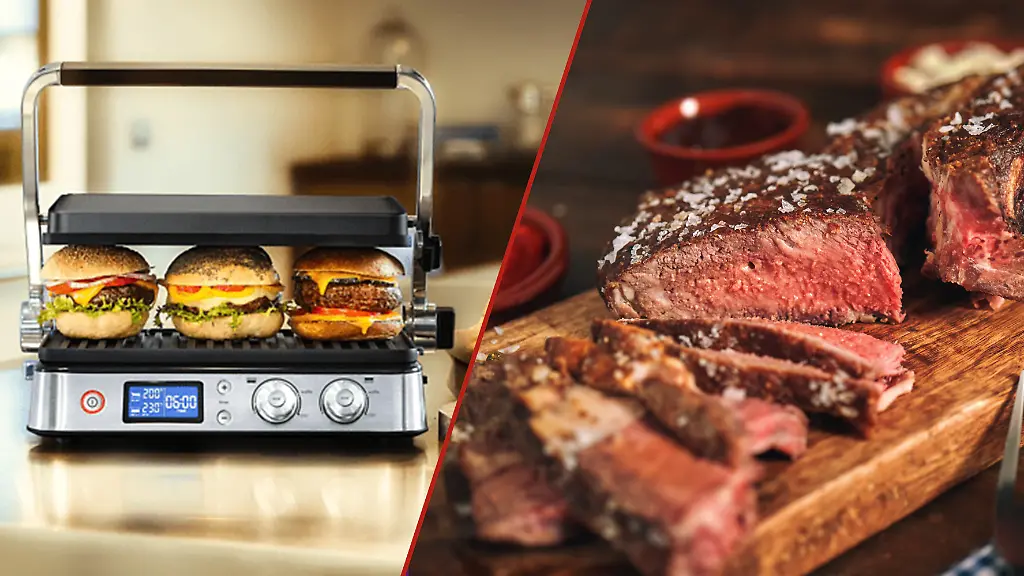 Das Gute: Ob Steak, Burger, Sandwiches oder süße Pancakes – dank verschiedener Platten und individueller Temperatureinstellungen kann alles gegrillt werden, was auf der Speisekarte steht. Und das sogar simultan: Da wird der Patty mit dem Burgerbrötchen und gegrilltem Gemüse gleichzeitig fertig – das sieht und schmeckt man doch gern! Ob die Extra-Features der 9er-Modelle die Preissteigung rechtfertigen, ist Auslegungssache. Fakt ist: Wer auf eine moderne Digitalanzeige, Boost-Funktion und ein Grillthermometer nicht verzichten kann, sollte vielleicht etwas mehr Geld in die Hand nehmen und sich an die Profi-Geräte wagen.
