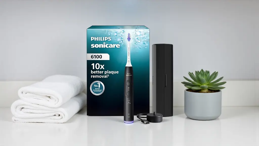 62.000 Bürstenkopfbewegungen pro Minute, intelligente Andruckkontrolle und 15 Prozent unter der UVP: Die Sonicare 6100 von Philips fällt preislich auf ein neues Tief. Der Deal im Check!