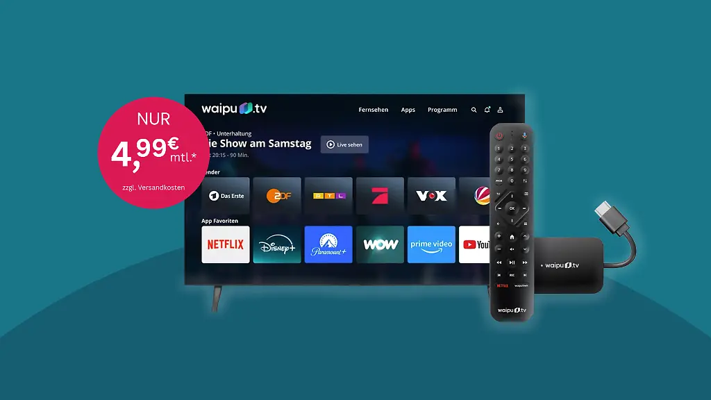 Inklusive neuestem TV-StickPreis halbiert: Waipu.tv-Abo mit über 240 Sendern für fünf Euro