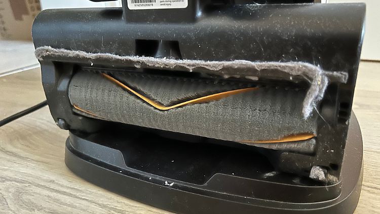 Beim Saugen unter dem Kleiderschrank im Kinderzimmer geht das Gerät plötzlich aus. Nanu? Gerade zeigte das Display noch 60 Prozent. Als die Düse zum Vorschein kommt, sehen wir auch den Grund: Eine Socke hatte sich verirrt und wäre sonst in den Sauger geraten, wenn der nicht automatisch abgeschaltet hätte – gut gelöst. Nach 26 Minuten ist die Wohnung sauber und der H60 macht schlapp – unser Arm aber ebenfalls. Denn die Motoreinheit und damit auch der Schwerpunkt liegen oben am Sauger und bei längeren Einsätzen macht sich das Gewicht durchaus bemerkbar. Hier kann Roborock noch von anderen Herstellern wie etwa Mieles Triflex HX2 lernen, bei dem der Motor auch unten am Gerät montiert werden kann.