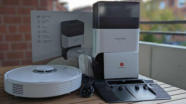 Ungefähr so groß wie ein Umzugskarton ist die Roborock-Verpackung, die der Paketbote die Treppe hochwuchtet. Zum Lieferumfang gehören neben dem weißen Saugroboter und der Absaugstation eine Bedienungsanleitung, ein Schnellstart-Guide, die Wischvorrichtung mit Mopp und ein Ersatz-Staubbeutel – alles verpackt in Plastik. Das ist zwar bei elektronischen Geräten nicht unüblich, Nachhaltigkeit sieht allerdings anders aus.