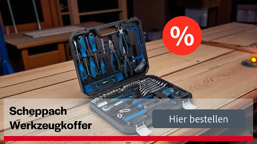 Wer sich eine Heimwerker-Grundausstattung möglichst preisgünstig anschaffen möchte, wird gegenwärtig bei Ebay fündig. Dort bietet der Händler Maschinenwelt einen 97 Teile umfassenden Werkzeugkoffer der Marke Scheppach für günstige 39,90 Euro an. Üblicherweise kostet dieses Set mindestens 50 Euro. Die unverbindliche Preisempfehlung liegt gar bei 219 Euro.