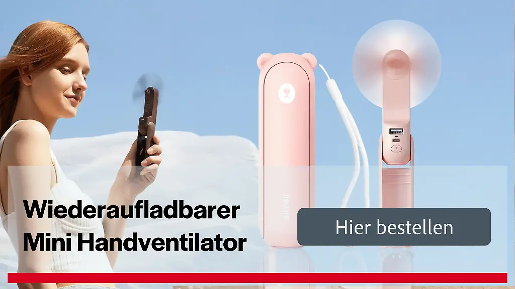 Der handliche Ventilator soll laut Anbieter nicht nur frischen Wind bringen, sondern auch als Powerbank und Taschenlampe dienen. Damit wird er zu einem vielseitigen Begleiter im Sommer – etwa beim Pendeln, auf Reisen oder im Freibad.
