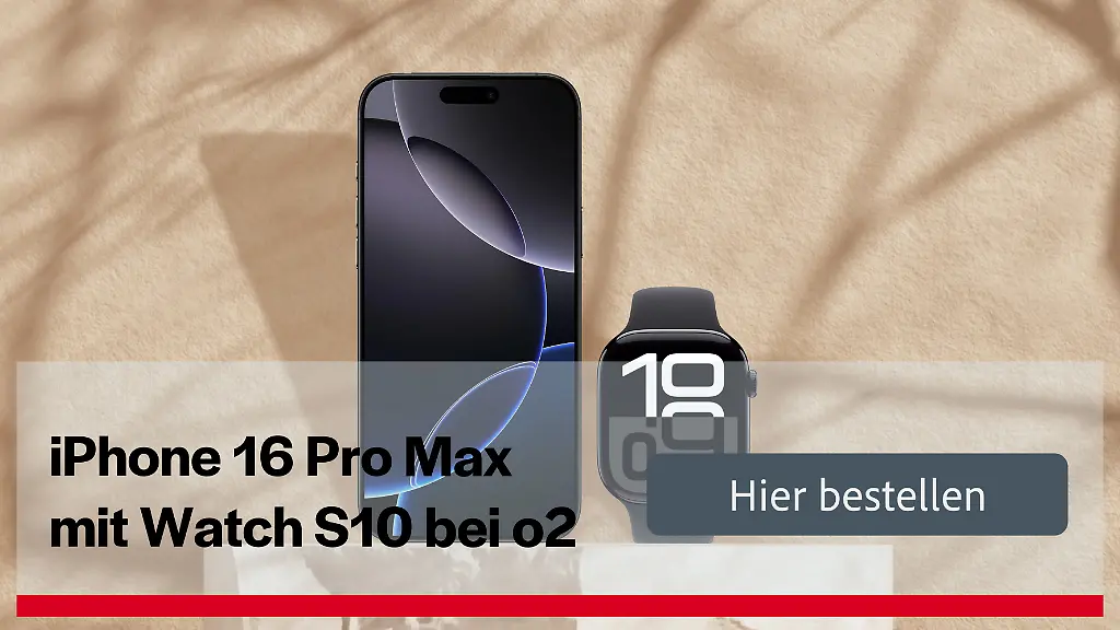 Bei Provider o2 gibt es das Apple-Handy-Flaggschiff zusammen mit der Watch S10 für einen symbolischen Euro Anschaffungskosten. Im Anschluss wird die Apple-Kombi drei Jahre nach und nach abbezahlt. Ohne Handy und Watch gibt es den Mobile-M-Tarif als monatlich kündbare Variante für knapp 20 Euro. Im Verbund mit den Geräten steigt der Preis auf monatlich 63,99 Euro.
