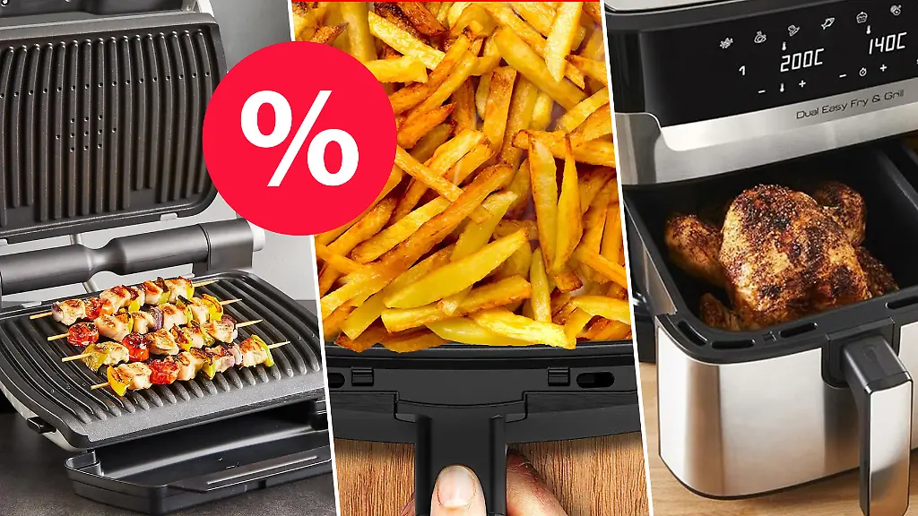 Die Heißluftfritteuse mit zusätzlicher Grillfunktion verfügt über zwei unabhängige Garräume, in denen unterschiedliche Speisen parallel zubereitet werden können. Zum Preis von 129 Euro bietet Media Markt das derzeit günstigste Angebot im Netz. Bei Computerbild kommt das Modell auf eine gute Gesamtbewertung – positiv fiel unter anderem die einfache Bedienung auf.
