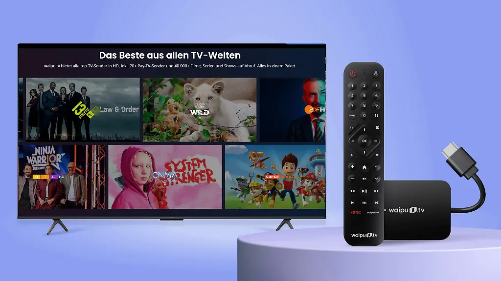 TV-Stick der 2. GenerationWaipu.tv-Startpaket mit über 250 Sendern für 4,99 Euro im Monat