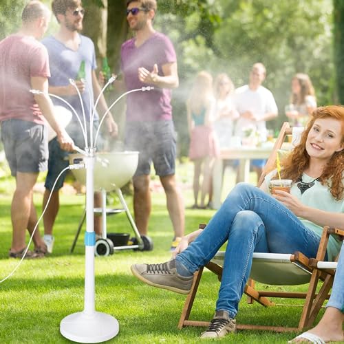 Die wohlverdiente Abkühlung gibt es auch ohne langes Montieren. Besonders in Außenbereichen, wo es an Möglichkeiten zur Befestigung fehlt, ist ein stehendes System die einfachere Lösung. Allerdings geht das Nebelsystem mit Ständer für einige Euro mehr über die Ladentheke.