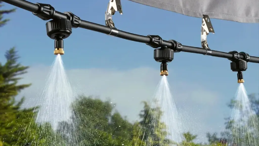 Für eine Fläche von drei mal drei Metern empfiehlt deavita.com hingegen Wassernebel-Systeme mit mindestens zehn Düsen. Wer eine größere Außenfläche abdecken möchte, greift beispielsweise zum Bewässerungsset von AOUVT mit zwölf Meter langem Schlauch und insgesamt 15 Düsen.