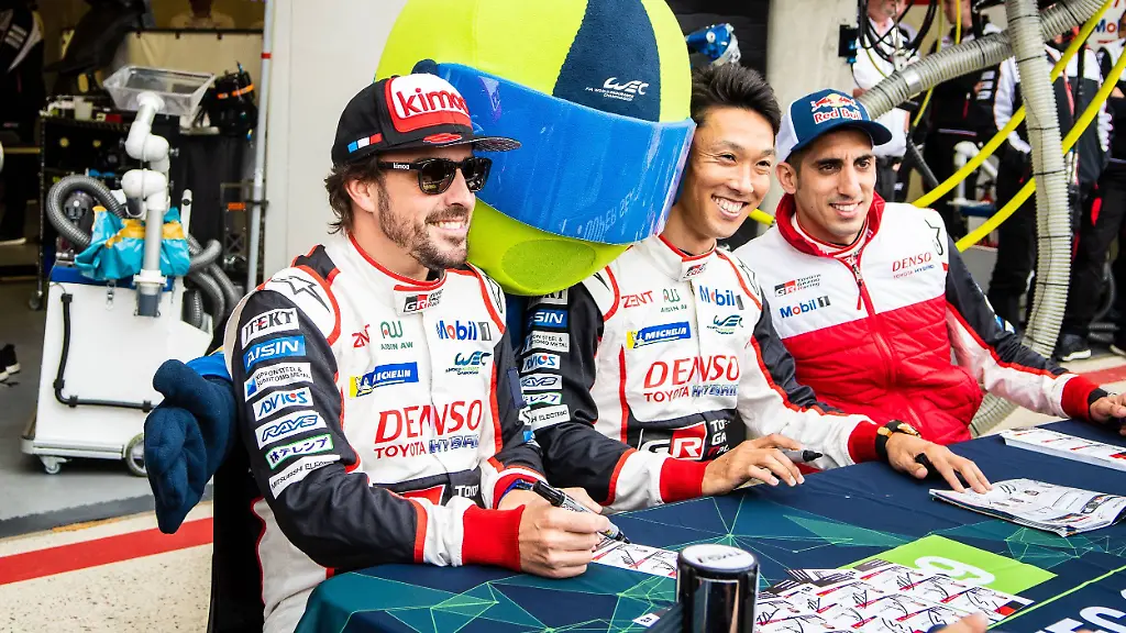 Und so drehte sich alles um den 36 Jahre alten Formel-1-Star, dabei hatte er gar nicht die schnellste Zeit herausgefahren. "Er hat makellose Arbeit abgeliefert. Dickes Kompliment", sagte Alonso hinterher in Richtung seines Teamkollegen Kazuki Nakajima, der den Toyota TS050 Hybrid an der Sarthe mit einer Rundenzeit von 3:15,377 Minuten auf Startplatz eins steuerte. Also wies Alonso die Fotografen an, "ihn hier" abzulichten und zeigte auf den Japaner.