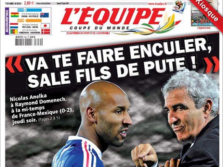 Nach der Beschimpfung war Anelka in Südafrika vom Fußball-Verband vorzeitig nach Hause geschickt worden. Die Affäre verschlimmerte damals das wegen Querelen und Cliquenbildung ohnehin angespannte Arbeitsklima im WM-Quartier der "Bleus" im südafrikanischen Knysna. Am 20. Juni protestierten die französischen Nationalspieler mit einem ungewöhnlichen Trainingsboykott gegen den Ausschluss Anelkas. Der Weltmeister von 1998 schied nach der Vorrunde sieglos aus.