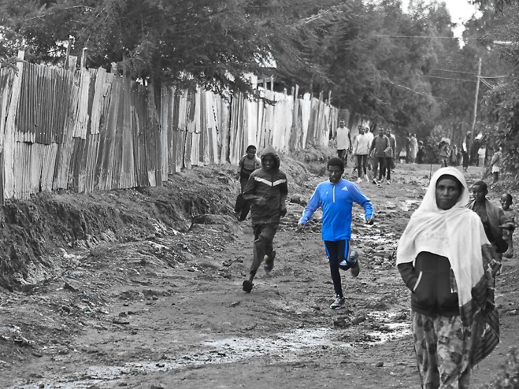 Als der 38-Jährige mit einer Gruppe von vier Läufern an diesem Morgen los trabt, kommen die ersten Bewohner aus ihren Lehmhütten. Sie gehen zum morgendlichen Gebet in die Kapelle. Rund 1000 Menschen leben auf dem Entoto in ärmlichen Verhältnissen. Sie lieben und verehren "ihren Haile", freuen sich, den Stolz Äthiopiens zu sehen. Rasch bildet sich eine Traube aus Kindern um den Läufer, der die Symbolfigur ist für ein besseres Leben.