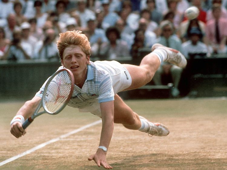 Das war noch Einsatz. Wenn noch ein Stück zum Ball fehlte, setzte der junge Becker schonmal zu seinem legendären "Becker-Hecht" an.