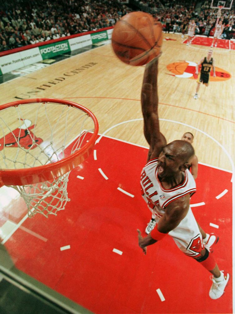 Lässig dribbelt er über die Mittellinie, die Bulls nehmen keine Auszeit. Noch 17 Sekunden zeigt die Uhr an. Jordan stellt sich seinen Gegner Bryon Russell zurecht und zieht dann mit drei schnellen Schritten Richtung Freiwurflinie. Er stoppt so abrupt, dass Russell nur noch vorbeifliegen kann. Dann steigt Jordan in unnachahmlicher Manier zum Sprungwurf hoch. Seine rechte Wurfhand bleibt so lange in der Luft, bis der Ball zu seinem Punkten 44 und 45 durchs Netz segelt - ohne den Ring auch nur zu berühren. Der Rest ist Geschichte.