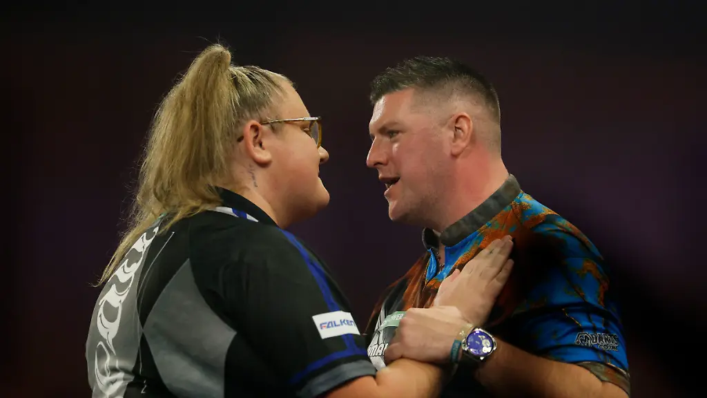 Greaves halfen gegen "Superchin" Gurney auch sieben 180er-Aufnahmen und die bessere Doppelquote (38 Prozent) nicht. Die Vize-Weltmeisterin der Junioren gilt inzwischen als beste Spielerin der Welt, gewann 86 Mal hintereinander bei der Women's Series des Weltverbandes PDC. Auch den Weltranglisten-22. forderte Greaves gewaltig. Im zweiten Satz gelang es ihr, ein Leg mit gerade einmal zehn Würfen für sich zu entscheiden. Doch am Ende hatte Gurney das glücklichere Ende auf seiner Seite. "Sie ist für mich die beste Spielerin auf dem Planeten", sagte der 39-Jährige, der nach dem entscheidenden Wurf erst einmal tief durchatmete und anschließend Greaves aufmunternd in die Arme schloss. "Selbst aus männlicher Sicht hat diese Frau Eier."
