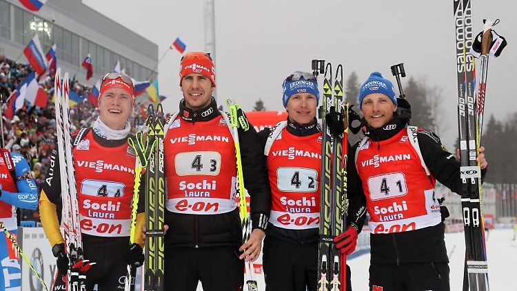 Zufriedene Zweite: Benedikt Doll (v.l.), Arnd Peiffer, Andreas Birnbacher und Erik Lesser.
