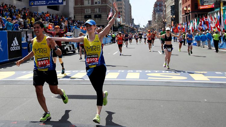Andere absolvierten das Rennen in gelben T-Shirts mit der Aufschrift "MR8" - es sind die Initialen des achtjährigen Martin Richard, der am 15. April 2013 das erste der drei Todesopfer wurde. Auch aus Deutschland waren wieder zahlreiche Hobbysportler angereist - unter anderem der ehemalige Bundesminister für Gesundheit, Daniel Bahr. Obwohl die Anzahl des Sicherheitspersonals auf rund 3500 verdoppelt wurde, über dem Stadtzentrum Hubschrauber kreisten und die Polizisten in ihren gelben Jacken überall sichtbar waren, hielten sie sich vornehm zurück. Präsenz ja, Einschüchterung nein. Und so wirkte der Zielbereich wie eine Festmeile und nicht wie ein Hochsicherheitsbereich.