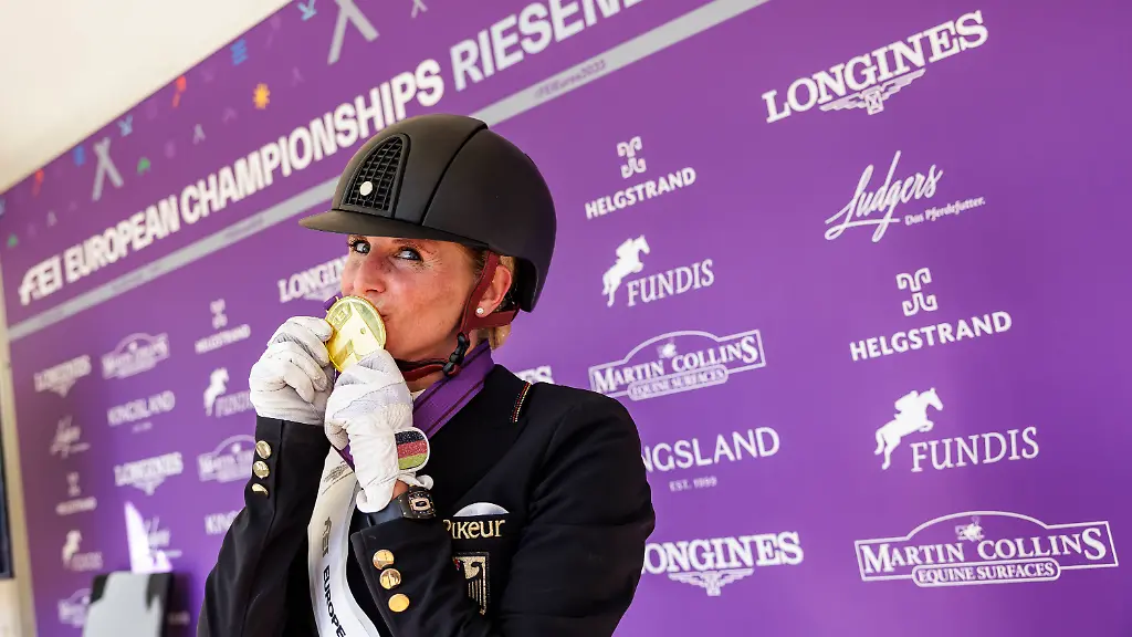 Überlegen sicherte sich die 37-Jährige aus dem bayrischen Tuntenhausen in der Kür Platz eins und verteidigte damit nach dem Grand Prix Special am Freitag auch den zweiten Titel. Sie erhielt 92,818 Prozent. Auf Platz zwei kam die Britin Charlotte Fry mit Glamourdale (92,379). Dritte wurde die Britin Charlotte Dujardin mit Imhotep (91,396). "Das war knapp", kommentierte die Siegerin den Abstand auf Platz zwei. "Ich weiß, dass da noch Luft nach oben ist. Ich werde in Ruhe weiter tüfteln."