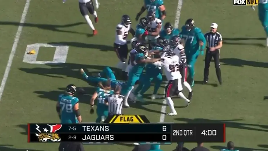 Trevor Lawrence wird im NFL-Spiel seiner Jacksonville Jaguars gegen die Houston Texans hart erwischt, nach einem üblen Tackle kommt es auf dem Platz zu einer Massenprügelei. Nun ist eine desaströse Saison für den hochbezahlten Spielmacher wohl vorzeitig vorbei.