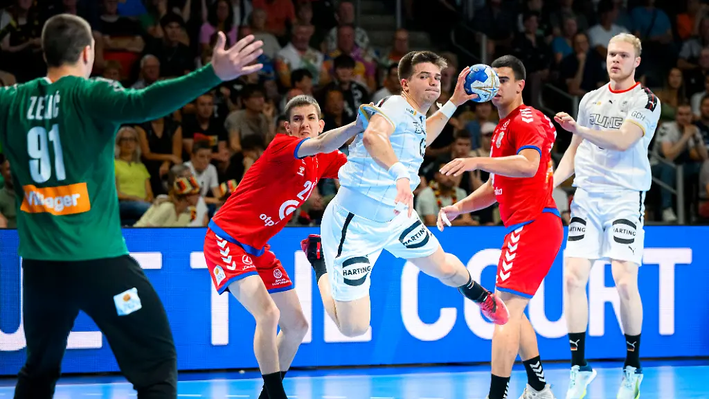 Das Talent dieses Jahrgangs hatte sich schon 2021 gezeigt, als ebenfalls unter Heuberger der Triumph bei der U19-EM gelang. Bob Hanning, Geschäftsführer des Bundesligisten Füchse Berlin, hatte schon vor Beginn des Turniers den Titel gefordert: "Alles außer Gold wäre für mich eine Enttäuschung." Die Auswahl des Deutschen Handballbundes (DHB) wird ihrem Favoritenstatus nun weiterhin gerecht. Mit weißer Weste war sie in die K.-o.-Runde eingezogen, in der Max-Schmeling-Halle folgten eindrucksvolle Auftritte gegen Dänemark (31:26) und nun gegen Serbien.