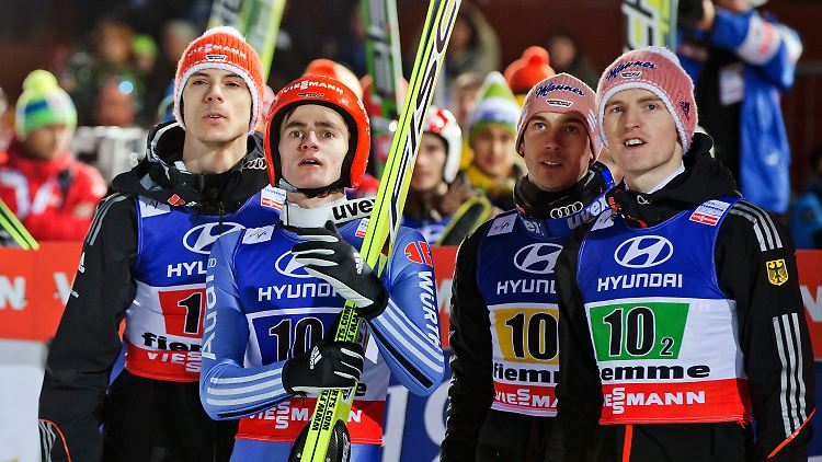 Schon über WM-Bronze freuen sich die deutschen Skispringer nach dem dramatischen Teamwettbewerb ausgiebig. Nach dem Wettkampf wird daraus sogar Silber, weil die Jury einen Rechenfehler korrigieren muss und Norwegen aus den Punkterängen fällt. Der Sieg geht an Österreich, schon wieder.