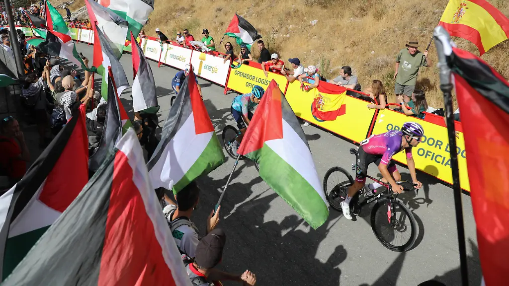Die Proteste propalästinensischer Demonstranten sind ein zentrales Thema der diesjährigen Spanien-Rundfahrt. Sie beziehen sich auf das Vorgehen von Israel im Gazastreifen.