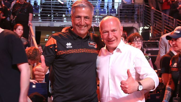 Am Samstag küsste Niroomand den Hallenboden, jubelte mit dem Regierenden Bürgermeister Kai Wegner, der zuvor die Schale überreicht hatte, und verkündete: "Ich habe eine Volleys-Mannschaft gesehen, die bis auf wenige Phasen einen super Volleyball gespielt hat."