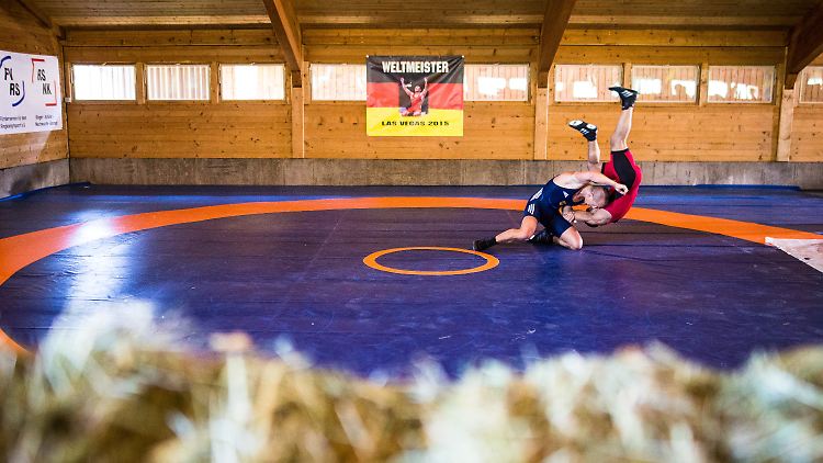 Es riecht nach frischem Heu, ein paar Fliegen surren in der Luft. Offene Türen geben den Blick frei auf grüne Wiesen, Bäume und Sonnenschein. Fast alles hier wäre geprägt von ländlicher Idylle und früh-sommerlicher Ruhe, wenn nicht mitten in diesem ehemaligen Kuhstall gerade einer von Deutschlands besten Sportlern trainieren würde. Zwischen Heuballen und Traktoren schleudert Frank Stäbler seinen iranischen Trainingspartner auf die Matte.
