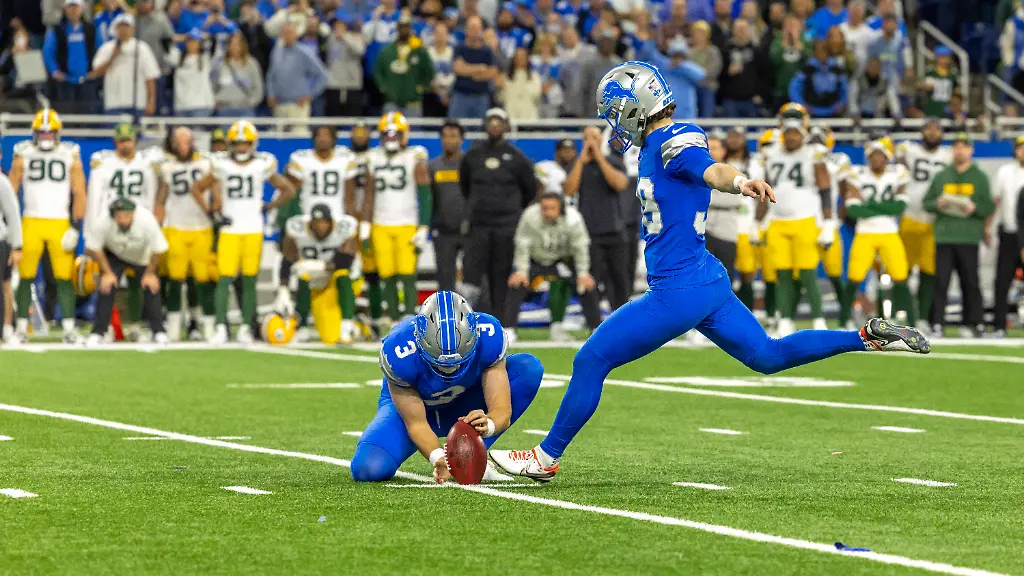 Die formstarken Detroit Lions haben sich in der amerikanischen Football-Liga NFL mit einem dramatischen Sieg gegen die ebenfalls starken Green Bay Packers frühzeitig für die Playoffs qualifiziert. Das Team um Quarterback Jared Goff und den deutsch-amerikanischen Wide Receiver Amon-Ra St. Brown gewann das Divisions-Duell mit 34:31 (17:7). Kicker Jake Bates verwandelte in letzter Sekunde das entscheidende Field Goal.