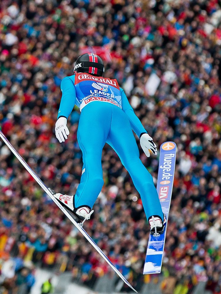 Jacobsen hatte im ersten Versuch auf 131 Meter eine Schrecksekunde zu überstehen, als er nach dem Absprung durch die Luft ruderte und nur mit Mühe einen Sturz vermeiden konnte. "Das war wie ein Helikopterflug", sagte der Norweger. Im Finale glänzte er mit der Tagesbestweite von 143 Meter und fing den zur Halbzeit führenden Schlierenzauer noch ab. Die Partystimmung in der mit 20.500 Fans ausverkauften Skiarena unweit der Zugspitze wurde gleich zu Beginn getrübt, als Freund nur bei 129,5 Meter landete und sich damit frühzeitig aus dem Rennen um einen Podestplatz verabschiedete. 130,5 Meter im Finale konnten daran nichts ändern.