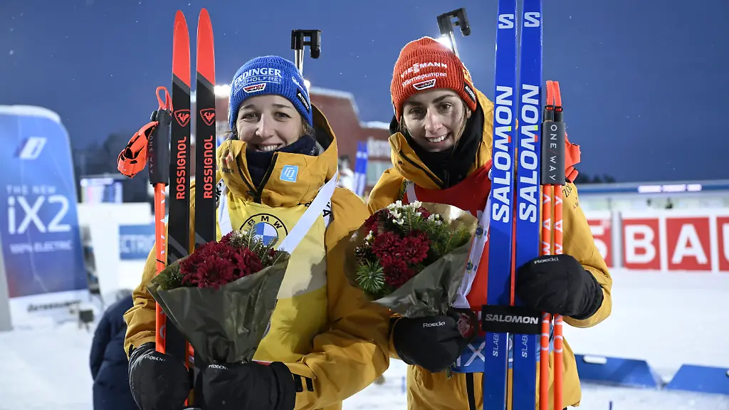 Zur Krönung des besten deutschen Biathlon-Starts der Geschichte ließen sich Franziska Preuß und Philipp Nawrath schon wieder jubelnd auf dem Podest feiern - und das auch noch in ihren Gelben Trikots. Als Führende der jeweiligen Gesamtwertung beendete das deutsche Duo sensationell den märchenhaften Weltcup in Östersund und nimmt die begehrten Leibchen mit zur nächsten Station ab Freitag im österreichischen Hochfilzen. "Ich freue mich sehr, dass ich das Trikot behalte und bin sehr motiviert, es so lange wie möglich zu verteidigen", sagte Preuß.