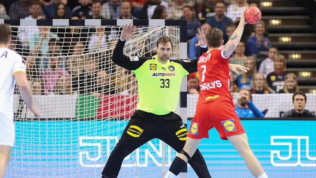 Vor 12.123 Zuschauern war Regisseur Juri Knorr mit neun Toren bester Werfer für die chancenlose DHB-Auswahl, die schon das Hinspiel am vergangenen Donnerstag in Aalborg klar mit 23:30 verloren hatte. "Die Angriffsleistung hat uns in beiden Spielen das Genick gebrochen. In der ersten Partie hatten wir 25 Fehlwürfe und vier technische Fehler, dieses Mal waren es 23 und neun. Das ist sehr enttäuschend", kritisierte der Bundestrainer. Ein Lichtblick war lediglich Torwart Wolff, der mit 15 Paraden wie schon im ersten Duell herausragte. Das entsprach einer Top-Quote von 36 Prozent gehaltener Würfe. "Andy war in beiden Spielen gut", lobte Gislason den 31-Jährigen. Allerdings bewegte sich Dänemarks Keeper Emil Nielsen auf dem gleichen hohen Niveau.