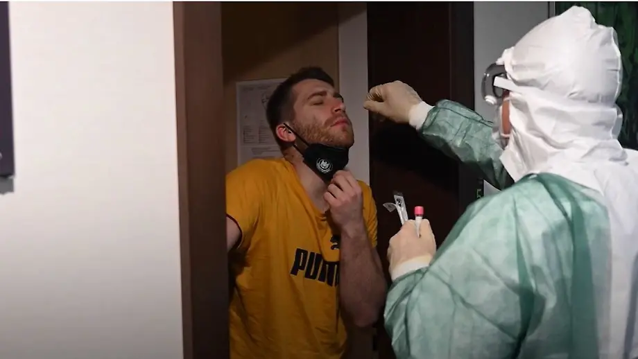 Die Spieler werden nach den Partien wieder isoliert. Persönliche Begegnungen gibt es nur auf dem Weg zum Buffet. Gegessen wird wieder alleine auf den Zimmern, wie Rune Dahmke am berichtet. Um das Risiko maximal zu minimieren, tragen die Handballer während der Spiele Maske auf der Bank. Nach elf Corona-Ausfällen hatte der DHB-Tross die Sicherheitsvorkehrungen noch einmal hart verschärft. Das zeigt erste Erfolge: Am Donnerstag hatte es keinen neuen Fall beim Team gegeben. Und es besteht sogar die Hoffnung, dass Rückraumspieler Julius Kühn heute aus der Quarantäne zurückkehren und vielleicht wieder spielen kann.