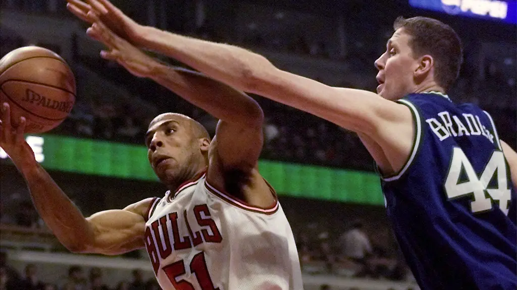 Wenn Bradley seine Arme zum Block ausfuhr, kam er nicht überraschend und spektakulär aus dem Parkett-Nirvana angerauscht. Dann haute er seinem Gegner die Bälle nicht wütend aus dem Slam-Dunk-Anflug um die Ohren, nein, Bradley servierte den Ball höflich ab. Ein Chef-Kellner am Ring. Wie wundervoll anders er das tat, das zeigt eine Szene aus seinem wohl besten NBA-Spiel. Gegen die alles überragenden Chicago Bulls mit Jordan, Dennis Rodman, Ron Harper und Toni Kukoc nahm er dem Kroaten ein Layup in unvorstellbarer Höhe weg. Nicht mit einem BÄM, eher mit einem PSSST. Einfach weggechippt. Und mit dieser leisen Art seines Spiels setzte er in der Dynastie der lauten und trashtalkenden Giganten seine Spuren. Die Saisons 1995/96, 1996/97 und 1997/98, das waren seine. Da legte er im Schnitt zwischen 12 und 14 Punkte auf und sammelte durchschnittlich zwischen acht und neun Rebounds ein. Danach baute er konstant und deutlich ab. Auch weil er bei Dallas Mavericks spielte, die ihr Spiel ab dem Jahr 1999 auf den großen Power Forward Dirk Nowitzki konzentrierten.